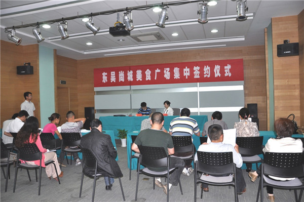 繼園區(qū)公舍配套商業(yè)樓東吳尚城商鋪火爆簽約之后,一樓美食廣場(chǎng)再度掀起搶租熱潮。5月12日下午,美食廣場(chǎng)集中簽約活動(dòng)在管委會(huì)一樓會(huì)議室火熱啟動(dòng),來(lái)自新民集、市區(qū)的眾多客戶現(xiàn)場(chǎng)簽約,現(xiàn)場(chǎng)一鋪難求,當(dāng)天下午共簽約出租商戶近20家。