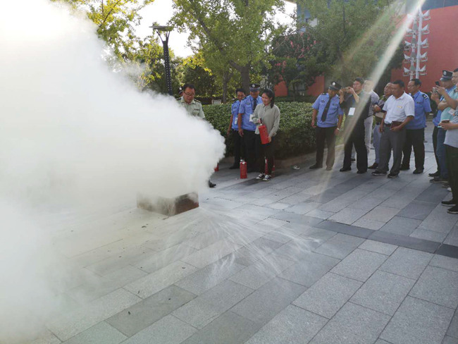 消防隊(duì)員現(xiàn)場講解滅火器使用原理,并組織物業(yè)人員、企業(yè)負(fù)責(zé)人現(xiàn)場操作。