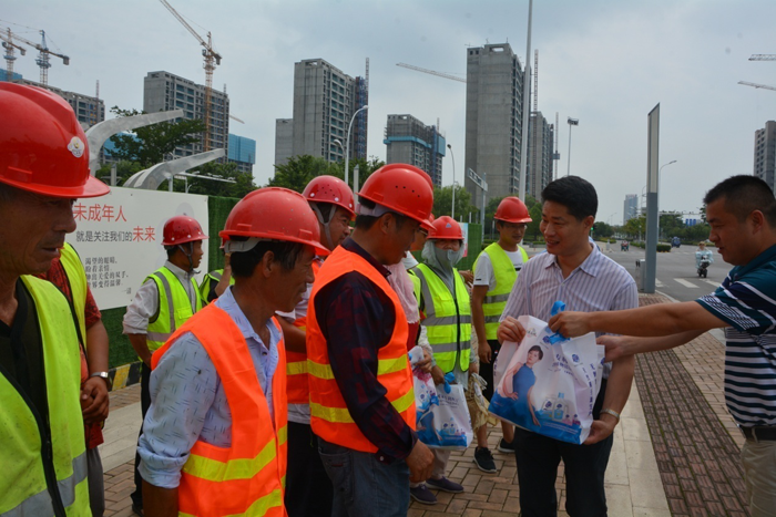 7月26日上午,開發(fā)公司副總裁劉建華帶隊慰問市政工程項目現(xiàn)場工人,給他們送去毛巾、香皂、洗發(fā)水等防暑降溫用品,感謝他們對園區(qū)市政工程的建設(shè)作出的貢獻。