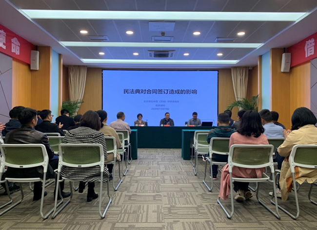 11月19日下午,我司舉辦《民法典》解讀專題講座,北京觀韜中茂(蘇州)律師事務所張輝律師主講,開發(fā)公司副總裁黃健主持,開發(fā)公司全體人員、建發(fā)公司、蘇宿鄰里公司相關(guān)人員參加講座。