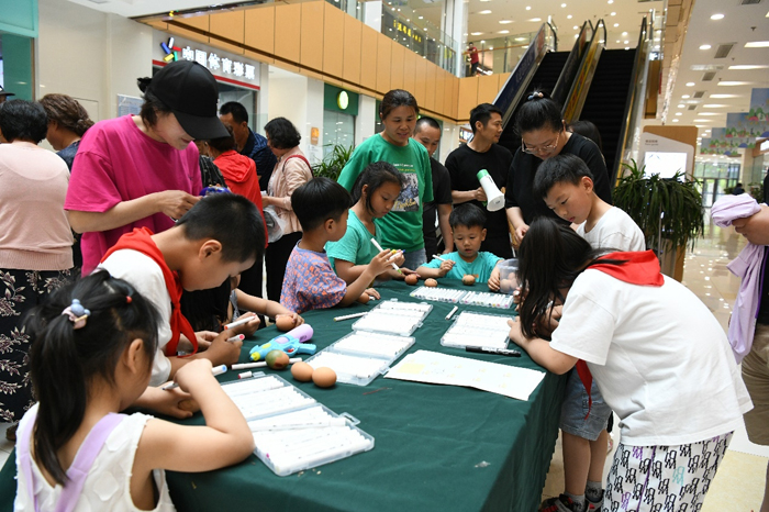 現(xiàn)場設(shè)計了豐富多彩的活動,有包粽子,彩繪雞蛋,還有制作香囊等,不但可以體會勞動的樂趣,更能將自己的勞動成果帶回家。