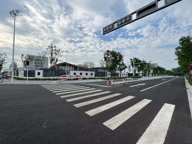 為保障宿遷市蘇州外國語實驗學(xué)校上下學(xué)期間周邊道路安全通暢,市政工程部根據(jù)園區(qū)現(xiàn)行道路情況,結(jié)合交通行政主管部門意見,在學(xué)校周邊道路設(shè)置學(xué)校警示牌、震蕩標線和部分道路中間增加隔離護欄等內(nèi)容。