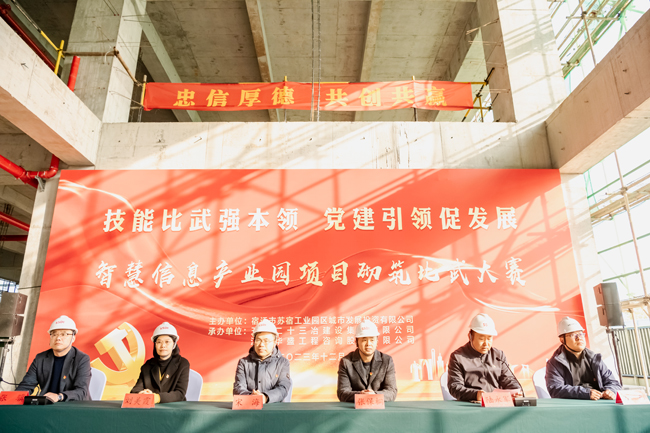 12月6日下午,園區(qū)智慧信息產(chǎn)業(yè)園開展“技能比武強本領(lǐng) 黨建引領(lǐng)促發(fā)展”主題的砌筑比武活動,園區(qū)機關(guān)及直屬單位黨委副書記、管委會辦公室副主任宋海、園區(qū)國資國企黨委副書記、財政局副局長張保桐、園區(qū)規(guī)劃建設(shè)局副局長劉美霞、園區(qū)建設(shè)工程質(zhì)量安全監(jiān)督站副站長方東、城發(fā)公司管理層及全體黨員、智慧信息產(chǎn)業(yè)園項目參建團隊參加本次活動,六組參賽隊伍分工明確,人員緊密配合,經(jīng)過激烈角逐,又快又好完成樣式圖案砌筑,決勝出綜合排名前三的隊伍,并為獲獎隊伍頒發(fā)獎品。