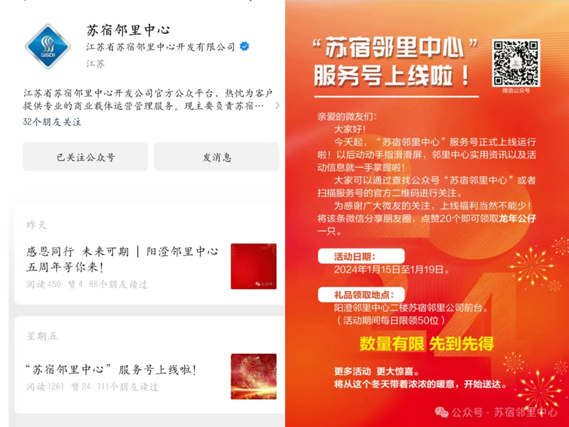 下一步,蘇宿鄰里公司將會(huì)繼續(xù)提升“蘇宿鄰里中心”服務(wù)號(hào)的運(yùn)營(yíng)能力,加大推廣力度,做好載體的社群維護(hù)工作。