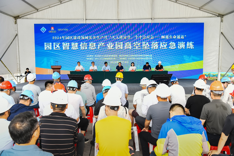 今年6月是第23個(gè)全國“安全生產(chǎn)月”,主題是“人人講安全、個(gè)個(gè)會(huì)應(yīng)急——暢通生命通道”。 為貫徹落實(shí)《園區(qū)安委辦關(guān)于開展2024年園區(qū)“安全生產(chǎn)月”活動(dòng)的通知》要求,6月14日,在規(guī)劃建設(shè)局組織下,城發(fā)公司會(huì)同園區(qū)智慧信息產(chǎn)業(yè)園各參建方,在項(xiàng)目現(xiàn)場舉行2024年園區(qū)建設(shè)領(lǐng)域安全生產(chǎn)月高空墜落應(yīng)急演練活動(dòng)。園區(qū)黨工委委員、管委會(huì)副主任、規(guī)劃建設(shè)局局長陳宏根,規(guī)劃建設(shè)局副局長劉美霞,城發(fā)公司總經(jīng)理助理張?bào)K,園區(qū)在建項(xiàng)目建設(shè)單位、施工總承包、監(jiān)理等100余名人員共同參與。