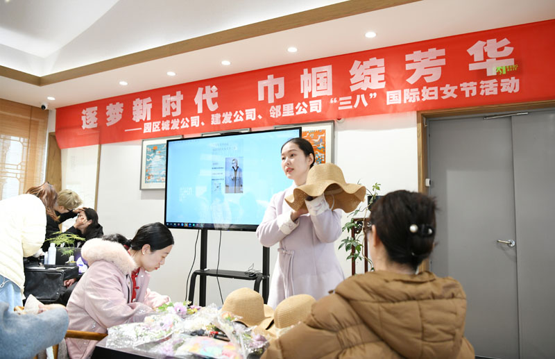 在手工制作環(huán)節(jié),女職工們化身“匠心設計師”,運用絲帶、花草等材料精心制作專屬禮帽?,F(xiàn)場學會運用各自的創(chuàng)意巧思,呈現(xiàn)出風格各異的作品。