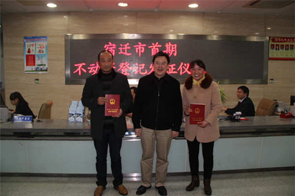市國土局局長趙昌說:“園區(qū)不動產(chǎn)登記走在全市前列,今天宿遷市首期不動產(chǎn)權(quán)證書的正式頒發(fā),標志著不動產(chǎn)統(tǒng)一登記制度在園區(qū)范圍內(nèi)全面啟動。”