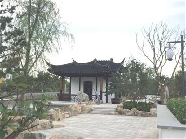 園區(qū)富民河北岸西段景觀綠化工程,位于富民河北岸(通湖大道至石公山路,石公山路至通達大道),總面積8024平方米,總投資約455萬元,整體風格為蘇式風格,借鑒蘇州園林元素,如滄浪亭、獅子林、拙政園和留園的園林特點,打造園區(qū)的“蘇式園林”。