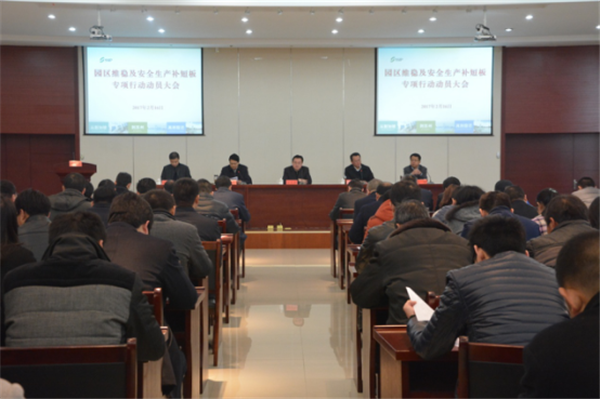戈亮回顧總結(jié)了園區(qū)2016年維穩(wěn)及安全生產(chǎn)工作,對2017年工作做了動員部署。高揚(yáng)宣讀了園區(qū)維穩(wěn)及安全生產(chǎn)補(bǔ)短板專項(xiàng)行動領(lǐng)導(dǎo)小組名單。方文浜與工委分管領(lǐng)導(dǎo)簽訂了維穩(wěn)及安全生產(chǎn)目標(biāo)管理責(zé)任書。各部門、各國資公司及可成科技等10家企業(yè)分別遞交了目標(biāo)責(zé)任狀和企業(yè)落實(shí)安全生產(chǎn)企業(yè)主體責(zé)任承諾書。園區(qū)規(guī)劃建設(shè)局等5家單位作了表態(tài)發(fā)言。
