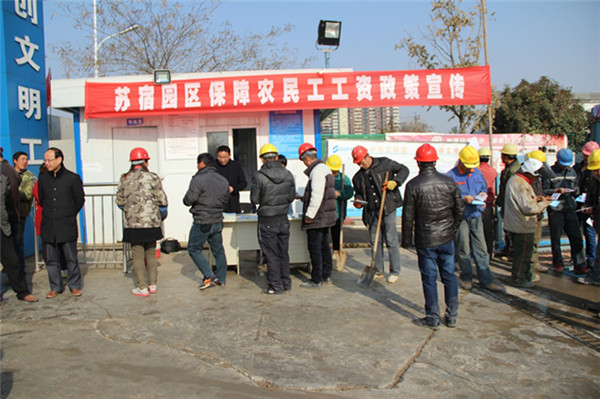 12月2日上午,為提高農民工維權意識,園區(qū)勞動保障和社會事業(yè)局、規(guī)劃建設局到碧桂園高層區(qū)項目施工現場開展保障農民工工資政策宣傳活動?;顒悠陂g,共發(fā)放《教你維權,農民工工資案例審編》《信訪手冊》《勞動者維權實用手冊》等相關資料200余份,現場接待群眾咨詢200多人次。